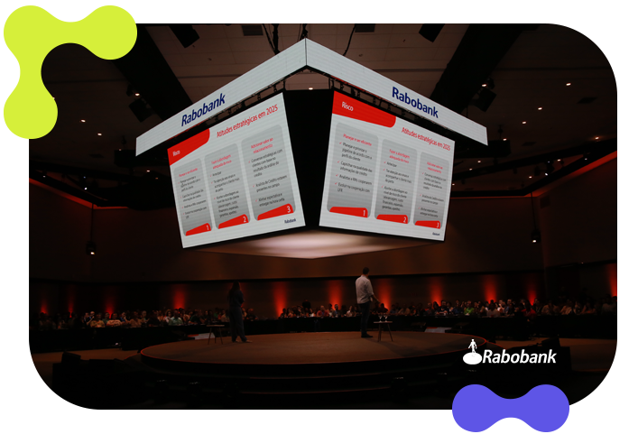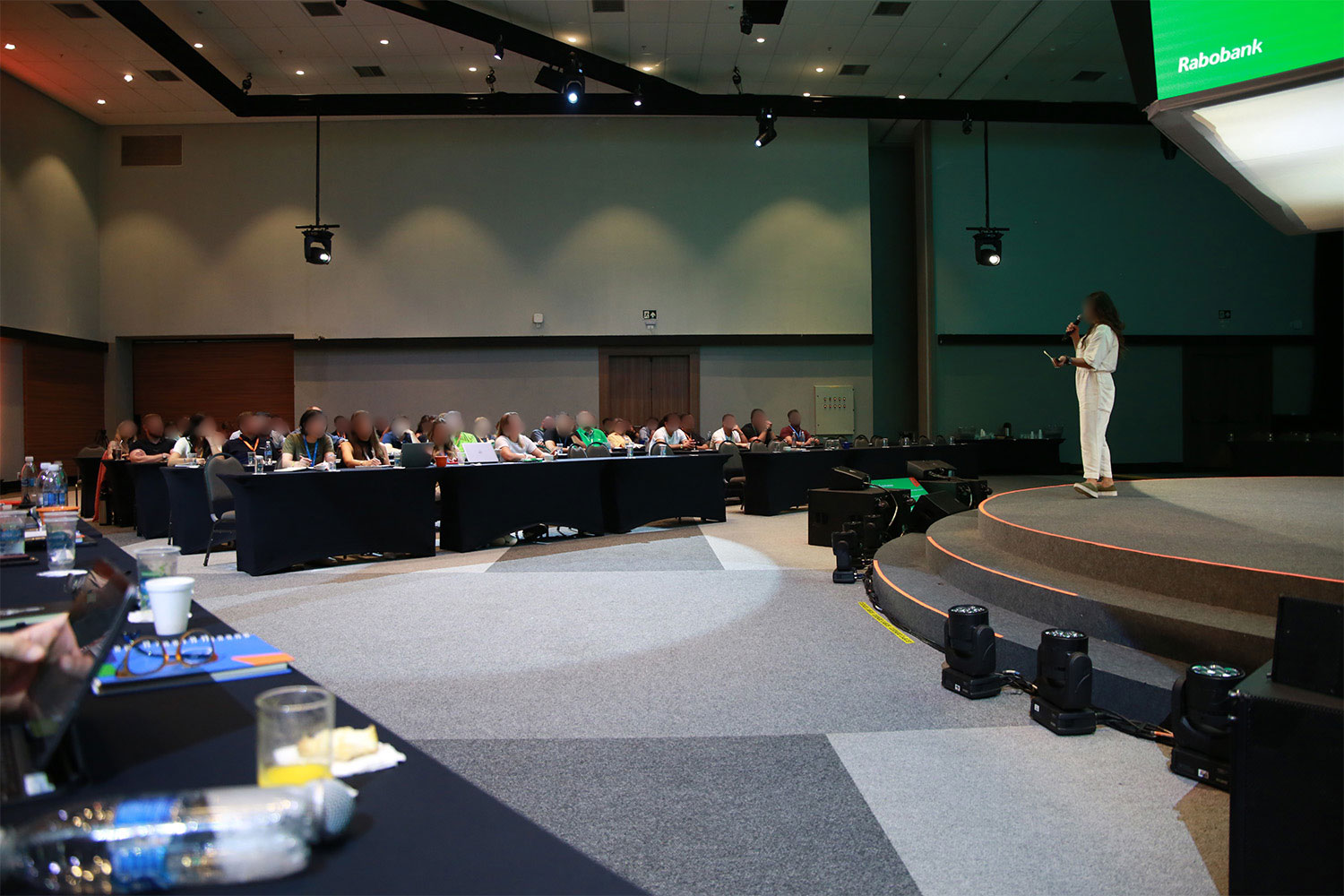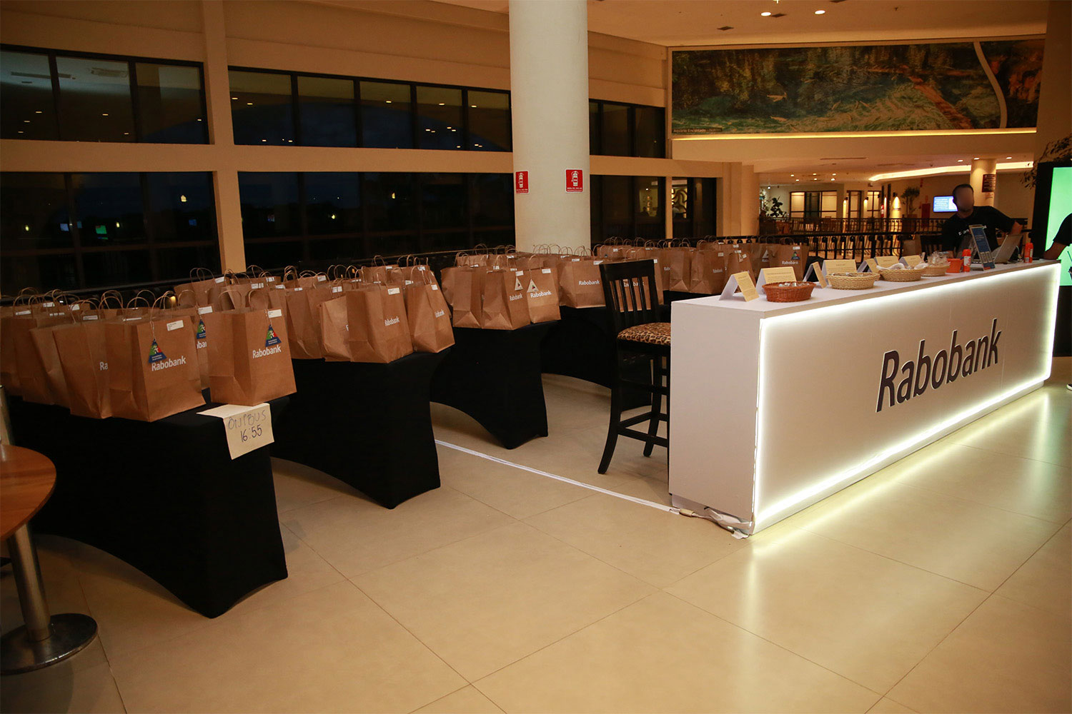 Despedida: Festa Cancun realizada na “Prainha” do hotel, onde todos utilizaram um brinde especial—sandálias Linus, feitas com materiais sustentáveis. A sustentabilidade esteve presente em cada detalhe. O Rabobank adota práticas de carbono negativo, e toda a dinâmica do evento foi alinhada a esse compromisso, desde a escolha dos materiais até as ativações ecológicas.