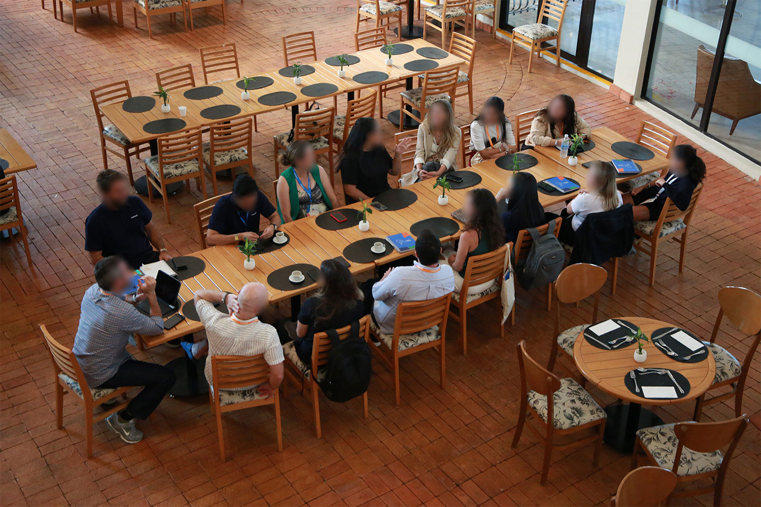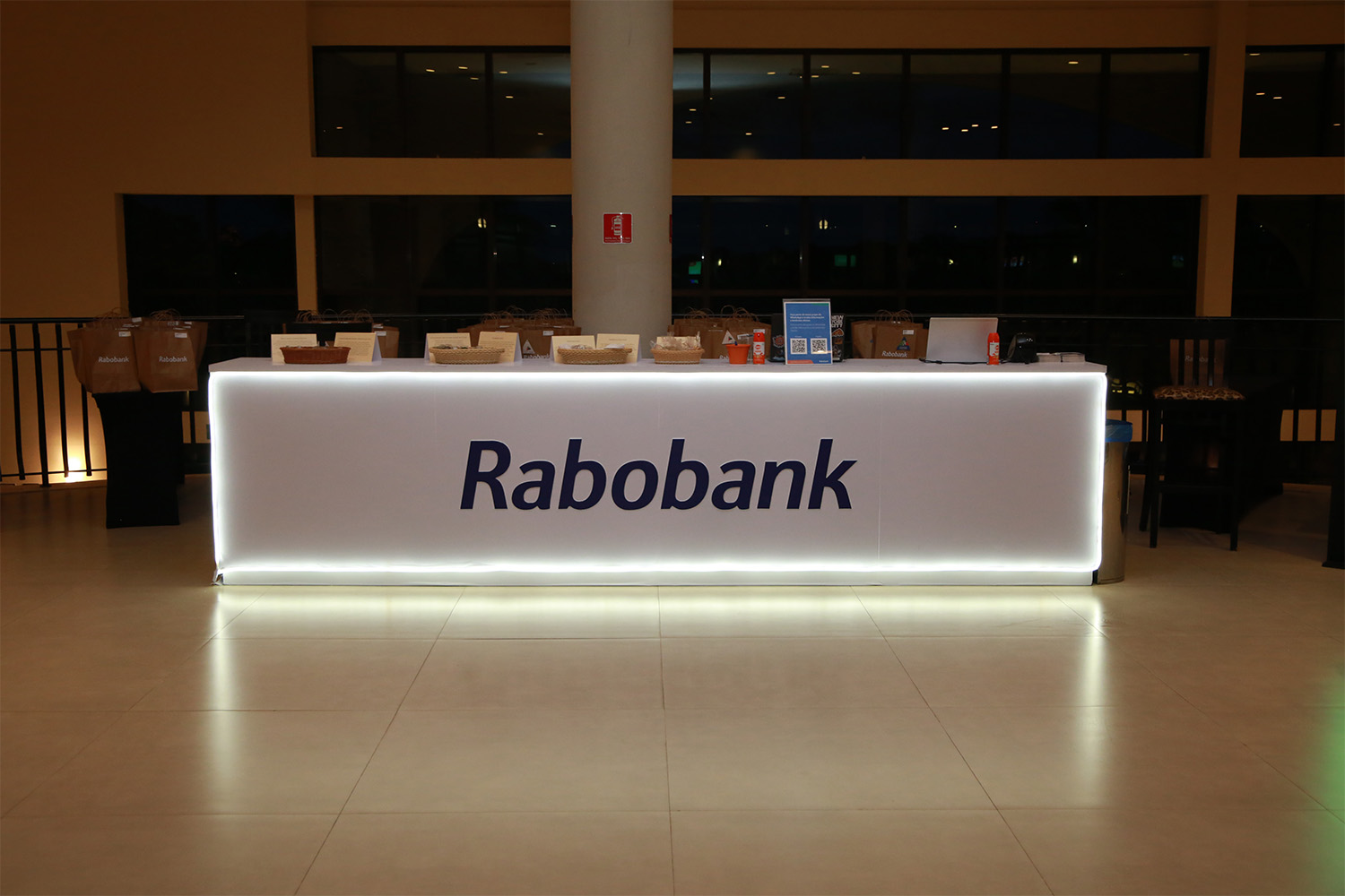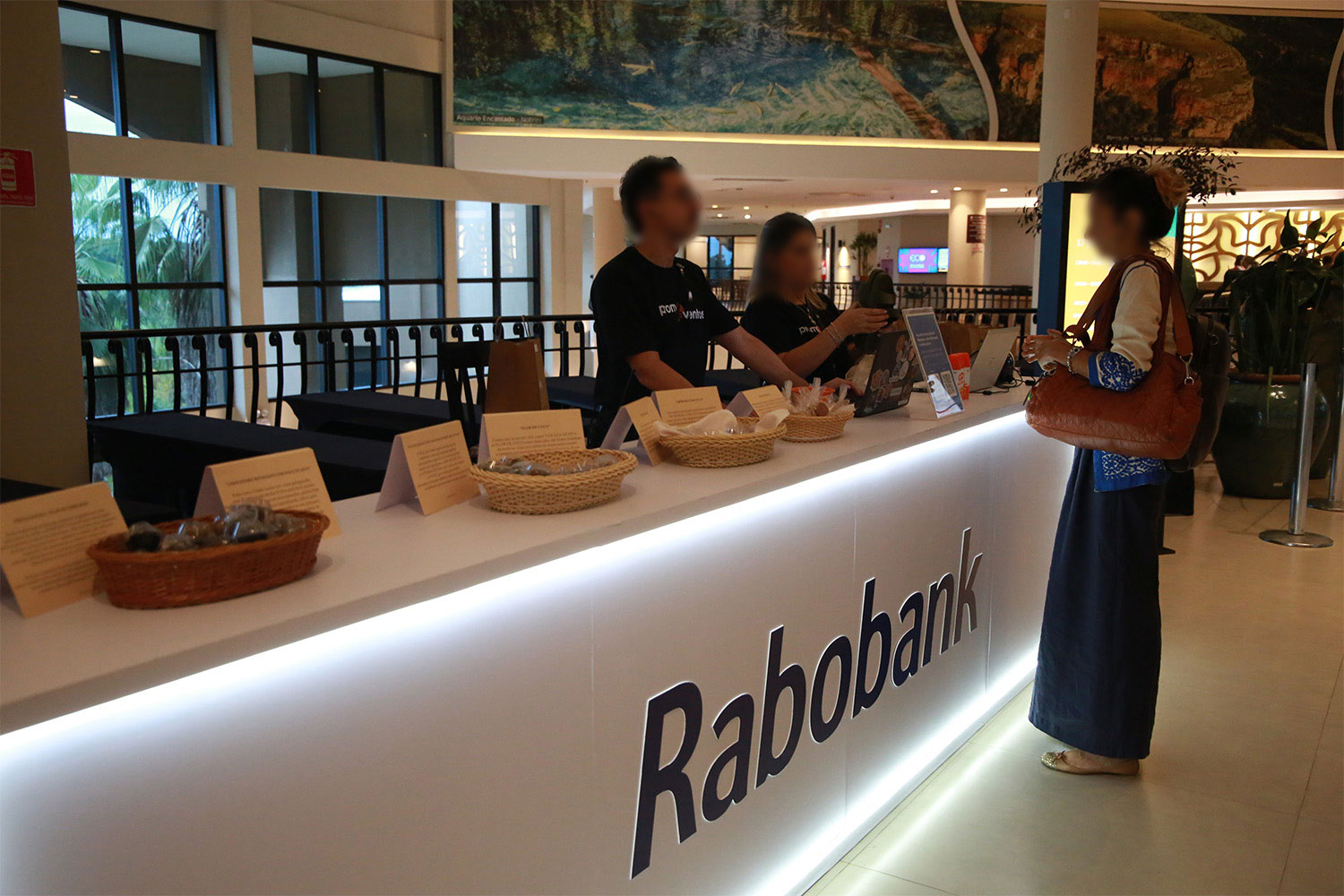 Despedida: Festa Cancun realizada na “Prainha” do hotel, onde todos utilizaram um brinde especial—sandálias Linus, feitas com materiais sustentáveis. A sustentabilidade esteve presente em cada detalhe. O Rabobank adota práticas de carbono negativo, e toda a dinâmica do evento foi alinhada a esse compromisso, desde a escolha dos materiais até as ativações ecológicas.